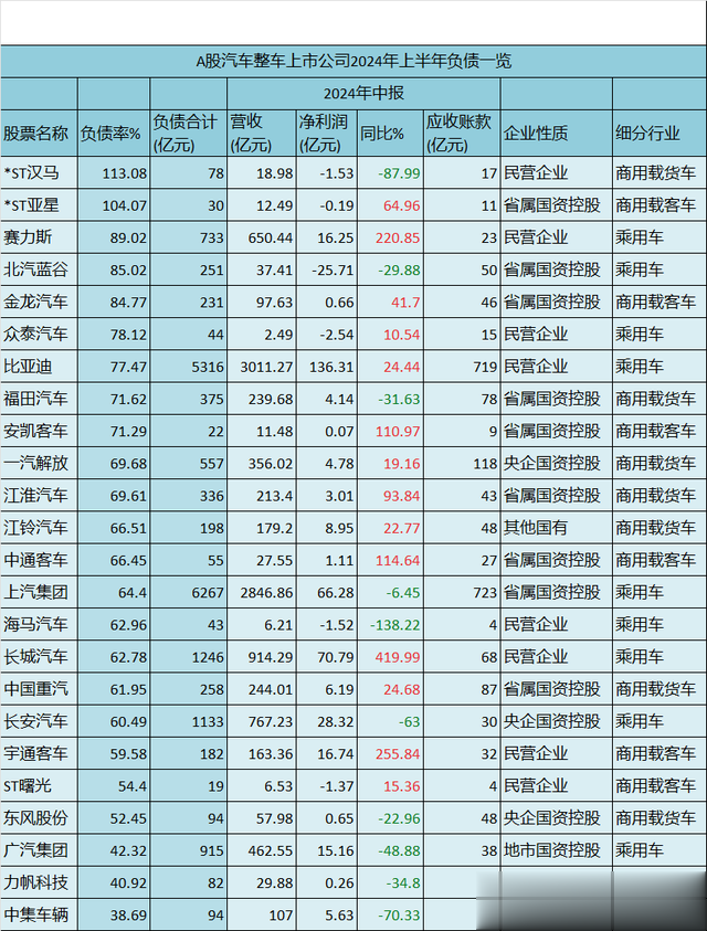 我复盘了这些汽车整车行业上市公司2024年上半年的资产负债情况,通过深入分析他们的货币现金、资产负债率等数据,一起来看下他们的具体负债情况。
