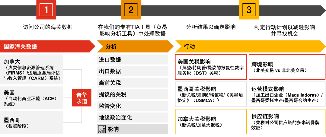 在美国关税政策频繁变动的背景下,普华永道开发了一款专业数据分析工具,可以导入企业过往五年申报的美国通关数据并将其运用于全面评估贸易合规风险。该工具可在数日内生成详细分析报告,识别潜在报关错误及税务优化机会,从而可以提升海关合规管理并通过精细化筹划增强全球竞争力。
