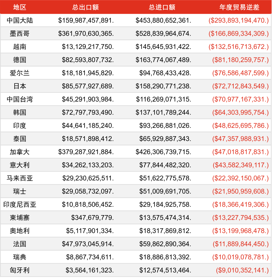 普华永道关税行业分析 - 美国前20大贸易逆差地区